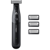 Borotva - hajvágáshoz, rezgőkéses mechanizmus, használható intim részek gondozására, a borotválkozó mechanizmus anyaga acél, 1 - 5 mm vágási hossz, 4 vágási beállítás, akkumulátor töltöttség kijelző és csúszásgátló fogantyú, tápellátás akkumulátorral, 90 perc működési idő, 1,5 óra töltési idő, 1 Li-ion elemmel működtethető, fekete kivitel, adapter, akkumulátor, védőtok utazáshoz és 3 db 1 mm, 3 mm és 5 mm hosszúságú borotvafej a csomagban, m