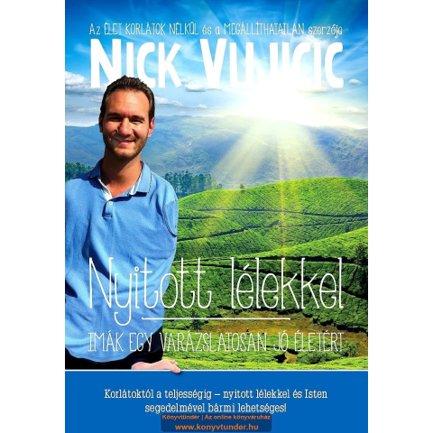 Nick Vujicic pontosan tudja, hogy nincs annál nagyobb áldás, mint ha valaki tudja, útján Isten kíséri, és tervei vannak vele. Ez akkor is reményt ad, ha már minden kilátástalannak tűnik. Nick karok és lábak nélkül született, átélte a kétségbeesés pokoli kínjait. Hitéből erőt merítve azonban legyőzte a zordon körülményeket, és túllendült fizikai korlátain. Megértette a szeretet teljességét, Isten végtelen erejét, mellyel minden egyes ember útját figye "Korlátoktól a teljességig nyitott lélekkel és Isten segedelmével bármi lehetséges!Nick Vujicic pontosan tudja, hogy nincs annál nagyobb áldás, mint ha valaki tudja, útján Isten kíséri, és tervei vannak vele. Ez akkor is reményt ad, ha már minden kilátástalannak tűnik. Nick karok és lábak nélkül született, átélte a kétségbeesés pokoli kínjait. Hitéből erőt merítve azonban legyőzte a zordon körülményeket, és túllendült fizikai korlátain. Megértette a szeretet teljességét, Isten végtelen erejét, mellyel minden egyes ember útját figyelemmel kíséri.Nick most azt akarja, Te is tapasztald meg a mindenható remény és szeretet erejét, találd meg hétköznapjaidban forrását és merítkezz meg benne. Ötven inspiráló példázata, rengeteg fájdalom árán szerzett bölcsessége a tanúbizonysága Isten hatalmának. A történetek Téged is segítenek, hogy erőt meríts belőlük, és arcod az Úr felé fordítsd. Ha küzdesz a hiteddel, a kapcsolataiddal, a munkáddal, ha eluralt a félelem, ha megromlott az egészséged, ha