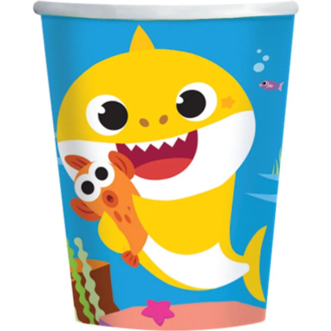 RAKTÁRRÓL AZONNAL! Baby Shark, Bébi cápák papír party pohár 8 db-os 250 ml 8 darab pohár/csomag Anyaga: papír