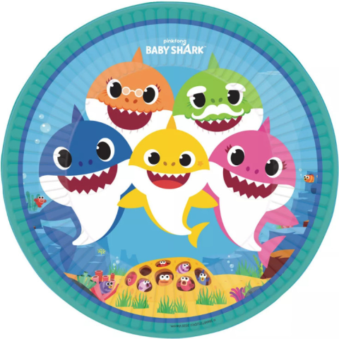 RAKTÁRRÓL AZONNAL! Baby Shark, Bébi cápák papírtányér 8 db-os 23 cm 8 db tányér/csomag Anyaga: papír