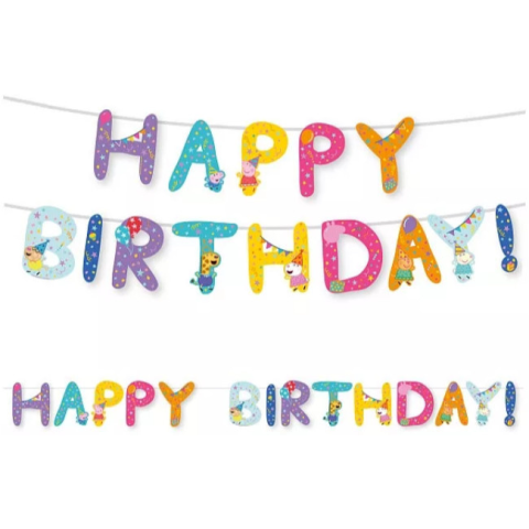 RAKTÁRRÓL AZONNAL! Peppa Pig, Peppa malac Celebration Happy Birthday felirat 3,2 méter Mérete: 3,2 méter