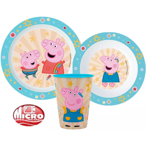 1 kép Nickelodeon Peppa malac étkészlet, micro műanyag szett 260 ml-es pohárral