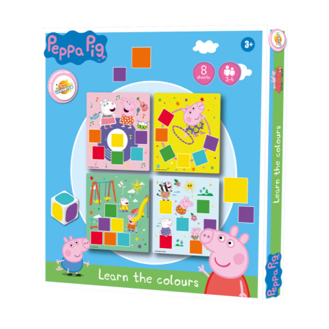 RAKTÁRRÓL AZONNAL! Peppa Pig, Peppa malac készségfejlesztő játék színekkel Tartalma: - 8 db kép - 1 db dobókocka - 3 ív színes papírlap Ajánlott 3 éves kortól.