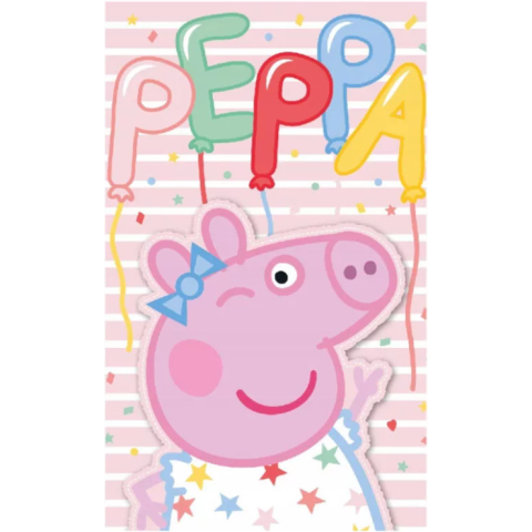 RAKTÁRRÓL AZONNAL! Peppa Pig, Peppa malac Party kéztörlő, arctörlő, törölköző Mérete: 30x50 cm Anyaga: 100% pamut Ez a termék OEKO-TEX Standard 100 minősítéssel rendelkezik, mely kifejezetten csak olyan összetevőket tartalmaz, ami az egészségre ártalmatl