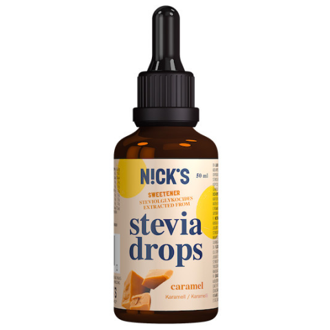 Nicks karamellás stevia csepp 50 ml NICK’S KARAMELLÁS STEVIA CSEPPEK 50 ML Hozzáadott cukrot nem tartalmaz,0 kalóriás édesítőszer, gluténmentes. Összetevők: desztillált víz, édesítőszer: szteviol-glikozid, aroma, inulin,C-vitamin. Tápérték 100 termékbe