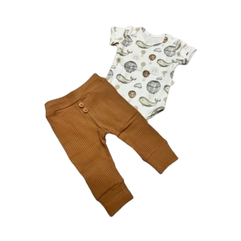 Nicol 2 Részes Szett - Fehér/Barna Bálnás 80 babaruha szett 1 kép