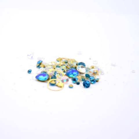 Vegyes méretű, és típusú díszítők keveréke, hasonló színben.