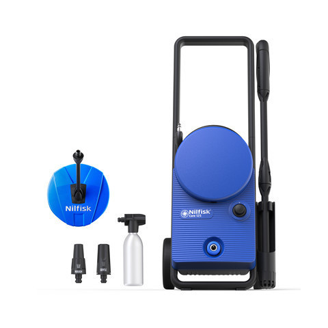 Erőteljes magasnyomású mosó általános használatra Ez az elegáns Nilfisk magasnyomású mosó nagyon egyszerűen használható, legyen szó bármilyen tisztítási feladatról. A hosszú élettartamú, tartós fémszivattyú hatékony tisztítási teljesítményt nyújt az é