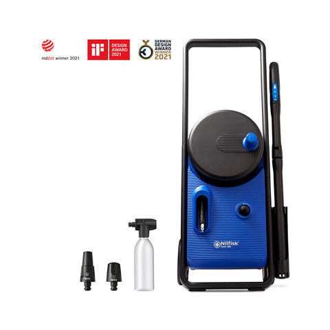 Nagy teljesítményű és praktikus magasnyomású mosó, mosószárba épített nyomásszabályozóval Erőteljes Nilfisk magasnyomású mosó, a mosószárba épített nyomásszabályozó segítségével megkönnyíti tisztítási feladatai elvégzését. Az ultramagas nyomatékú moto