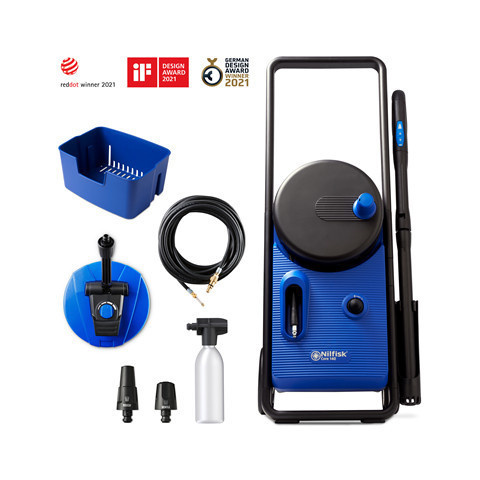 Nagy teljesítményű és praktikus magasnyomású mosó, mosószárba épített nyomásszabályozóval Erőteljes Nilfisk magasnyomású mosó, a mosószárba épített nyomásszabályozó segítségével megkönnyíti tisztítási feladatai elvégzését. Az ultramagas nyomatékú moto