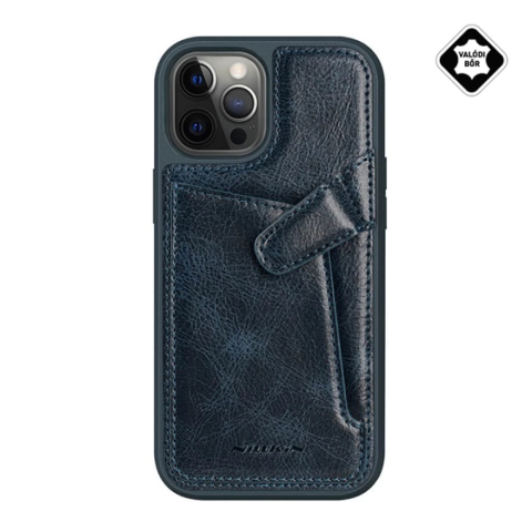NILLKIN AOGE műanyag telefonvédő (valódi bőr hátlap, mikrofiber plüss belső, kártyazseb) SÖTÉTKÉK