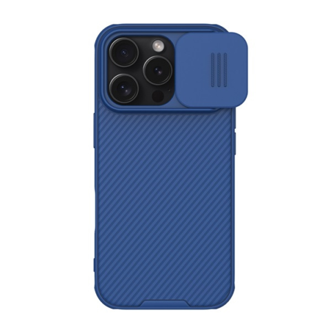 1 kép Nillkin CAMSHIELD PRO szilikon telefonvédő (ütésállóság, kameravédő, csíkos) SÖTÉTKÉK Apple iPhone 16 Pro