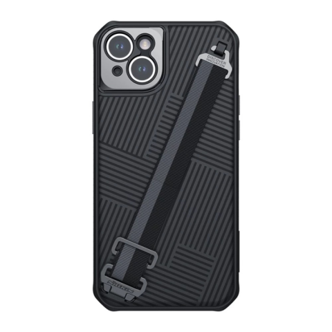 1 kép Nillkin iPhone 14 Plus NILLKIN STRAP műanyag telefonvédő ütésállóság, csíkos + kézpánt, FEKETE