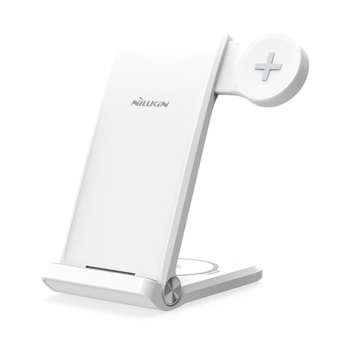 Töltőállvány - 15 W teljesítmény, 3 kimenet (15 W, 5 W, 3 W), USB-C bemenet, okosóra és AirPods talp, Android és iPhone eszközökhöz Biztosítsd készülékeid egyidejű töltését ezzel a praktikus töltőállvánnyal a népszerű Nillkin gyártótól, amely stílusos kiegészítőként is szolgál majd. Ez a modell egy utángyártott töltőállvány, amely
