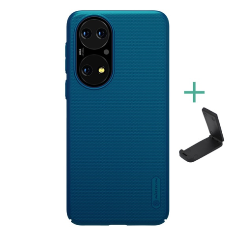 1 kép Nillkin SUPER FROSTED műanyag telefonvédő (gumírozott, érdes felület + asztali tartó) SÖTÉTKÉK Huawei P50