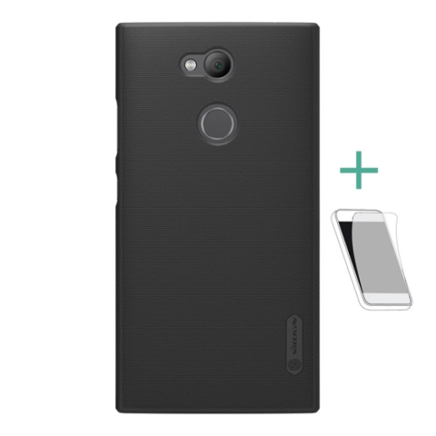 1 kép Nillkin SUPER FROSTED műanyag telefonvédő (gumírozott, érdes felület + képernyővédő fólia) FEKETE