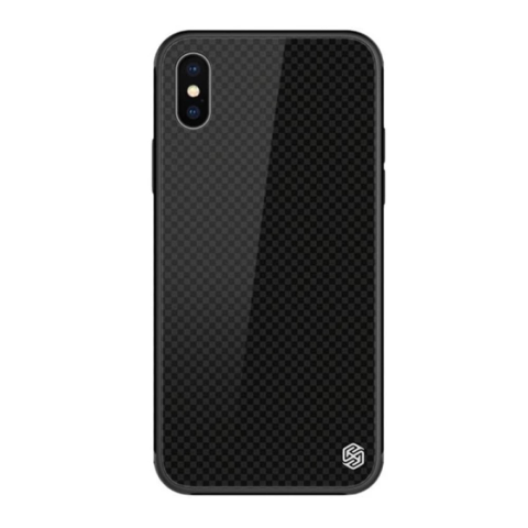 NILLKIN TEMPERED PLAID szilikon telefonvédő (ütésállóság, üveg hátlap, négyzet) FEKETE