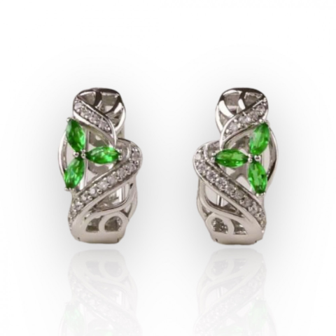 Kiváló minőségű, elegáns zöld köves antiallergén fülbevaló, amely tökéletes választás minden alkalomra. A fülbevaló rhodium bevonatú, így gyönyörű, fényes felületével emeli ki viselőjének stílusát. Méret : Magasság 17 mm, Szélesség 9 mm Szín : Rhodium Kő