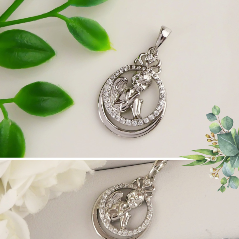 Angyalkás antiallergén nyaklánc Magasság: 28 mm, Szélesség: 16 mm Szín: Rhodium 45-50 cm hosszú nyaklánc ajándékba jár hozzá!