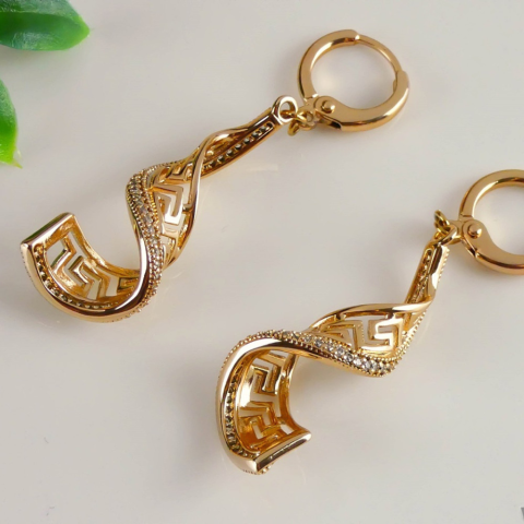 Egyedi csavart mintás fülbevaló, amely csillogó 18K színével és részletgazdag kidolgozásával hívja fel magára a figyelmet. Az antiallergén anyagból készült fülbevaló kényelmes viseletet biztosít még az érzékeny bőrűek számára is, így ideális a mindennapos