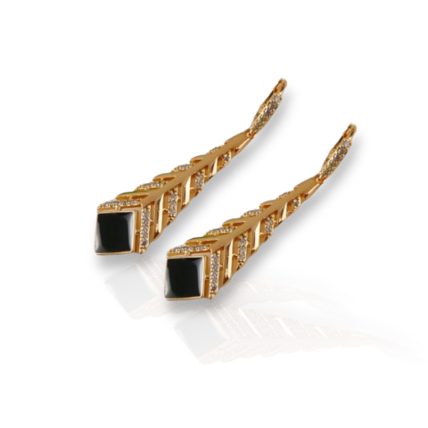 Kiváló minőségű, elegáns fekete köves antiallergén fülbevaló, amely tökéletes választás minden alkalomra. A fülbevaló 18 K színű bevonatú, így gyönyörű, fényes felületével emeli ki viselőjének stílusát. Méret : Magasság 44 mm, Szélesség 12 mm Szín : 18K