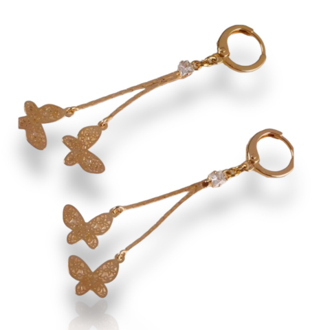 Ez a finoman kidolgozott, pillangó mintás antiallergén fülbevaló ideális választás a kifinomult stílus és a mindennapi kényelem kedvelőinek. A 18 karátos arany szín meleg, elegáns fényt kölcsönöz a fülbevalónak, amely kiemeli viselője természetes szépségé