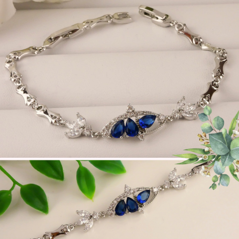 Nagyon szép kék köves antiallergén karkötő Hossz: 17+2,5 cm Szélesség: 5 ill. 13 mm Szín: rhodium