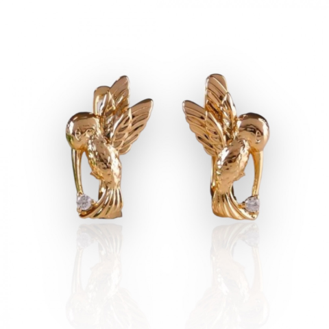 Ez az aranyos, kolibris fülbevaló tökéletes választás az állatbarátok és a különleges ékszerek kedvelői számára. Az elegáns, 18 karatos arany szín finom csillogást és stílust kölcsönöz viselőjének. Méret : Magasság 15 mm, Szélesség 10 mm Szín : 18 karáto