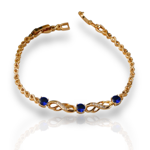 Kék kövekkel díszített antiallergén karkötő Hossz: 17+2 cm Szélesség: 3 ill. 6 mm Szín: 18K