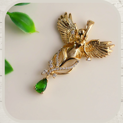 Antiallergén nyaklánc zöld kővel díszített Magassága: 37 mm Szélessége: 25 mm Szín: 18K 45-50 cm hosszú nyaklánc jár hozzá