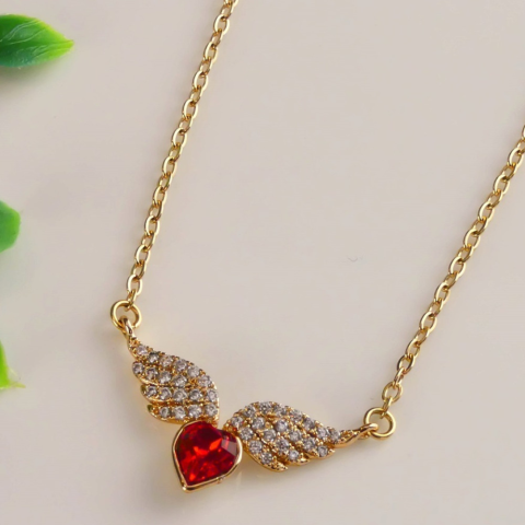 Antiallergén nyaklénc piros kővel díszítve Nyaklánc hossz: 41,5+5 cm Szélesség: 1 mm Medál magasság: 13 mm Szélesség: 25 mm Szín: 18K
