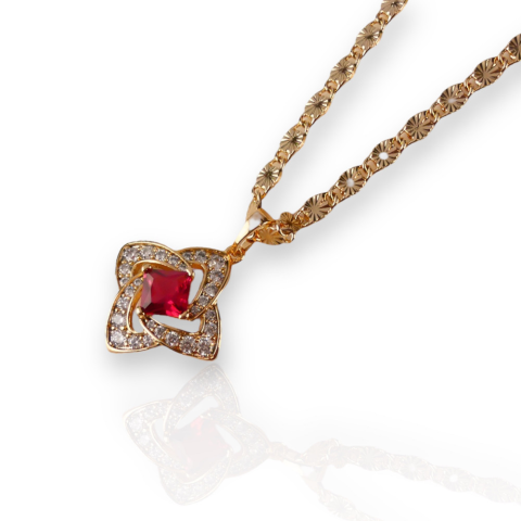 Antiallergén nyaklánc piros kővel Nyaklánc: Hossz: 45 cm Szélesség: 3 mm, Medál: Magasság: 27 mm Szélesség: 20 mm Szín: 18 K