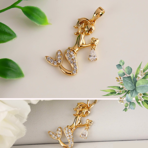 Sellő nyaklánc szépen csillogó kövekkel díszítve. Antiallergén Magasság: 32 mm Szélesség: 17 mm Szín: 18 K 45-50 cm hosszú nyaklánc jár hozzá!