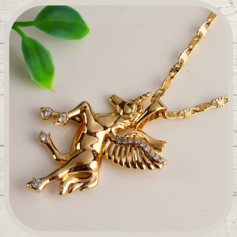 Unikornis antiallergén nyaklánc Nyaklánc hossz: 45 cm Szélesség: 2 mm Medál magasság: 36 mm Szélesség: 24 mm Szín: 18K