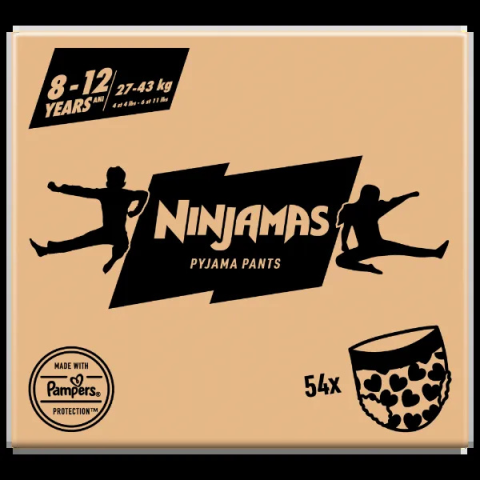 1 kép Ninjamas Pyjama Pants Szívecskés, 54 db Pyjama Bugyipelenka, 8 Éves Ko