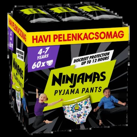 1 kép Ninjamas Pyjama Pants Űrhajós, 60 db Pyjama Bugyipelenka, 7 Éves Kor,