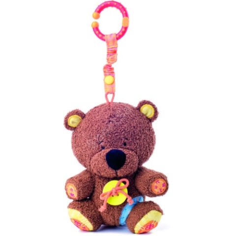 Ez a cuki kölyökmackó lógatható kiságyról, babakocsiról, hordozóról kiságy forgóról és még ezer helyről. Csörög, zörög, rágható, ölelhető és minden helyzetben szórakoztatja a babát. Mérete: 20×14 cm. Már újszülött kortól is!