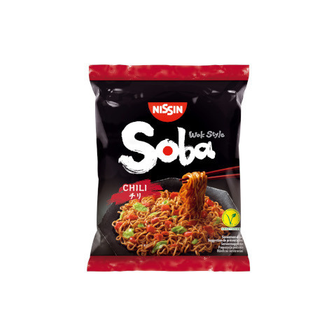 Nissin Soba Bag 111g Chili Fő jellemzők Gyors és kényelmes – készre főzhető néhány perc alatt, ideális gyors ebédhez vagy uzsonnához. Pikáns chili íz – élénk, fűszeres chili karakter, amely fokozza az étkezési élményt. 111 g adag – praktikus m