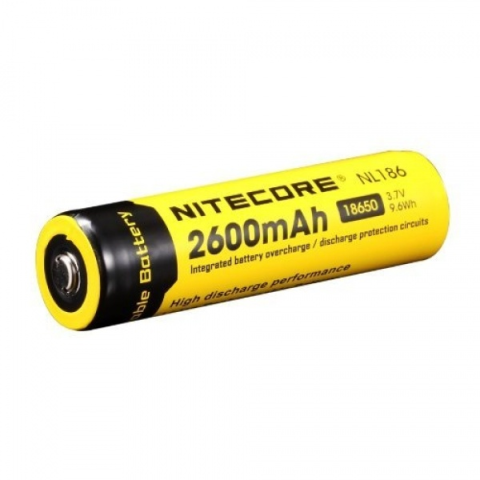 Nitecore 18650 3,7V 2600 mAh akkumulátor18650 méretű, Li-ion akkumulátor 2600mAh 3.7V 9,6Wh Beépített akkumulátor túltöltés / kisülés elleni védelmi áramkör Magas kimeneti teljesítmény Li-ion akkumulátor Több mint 500 töltés-kisütés ciklus