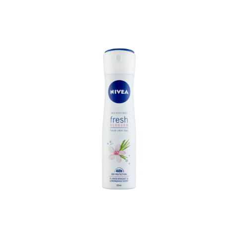 NIVEA Fresh Blossom izzadásgátló deo spray friss, nőies illattal, mely a kerti virágok édeskés illatának és a citromfű üde illatának kombinációját idézi. Hatékony védelmet nyújt az izzadság és a kellemetlen szagok ellen, akár 48 órán át.