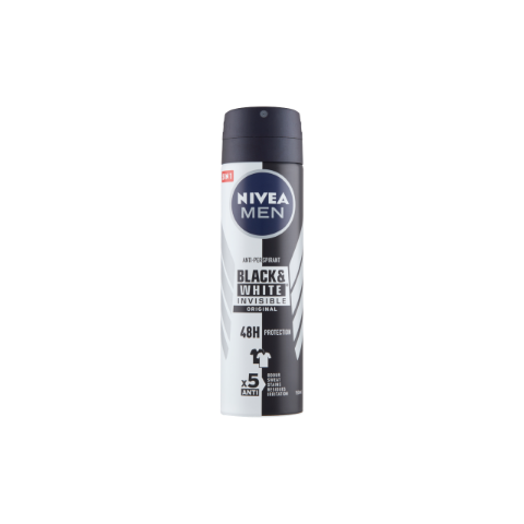 NIVEA MEN Black & White Invisible Original izzadásgátló deo spray férfiaknak nagy kiszerelésben. Hatékony védelmet nyújt az izzadság és a kellemetlen szagok ellen, így biztosítva a hosszantartó frissesség érzést. Csökkenti a fehér foltok kialakulását a fekete ruhákon és a sárga foltok kialakulását a fehér ruhákon.
