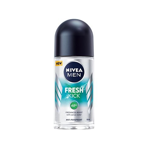 Izzadásgátló - férfi, golyós, zsíros, normál, kombinált, száraz és érett bőrre ajánlott, frissítő illat, hidratáló és védő, hosszantartó hatás, nem hagy foltot, gyorsan száradó, alkoholmentes, 50 ml-es kiszerelés A NIVEA MEN golyós izzadásgátlóval egész nap frissen és kényelmesen érezheted magadat. A Fresh Kick izzadásgátló roll-on friss illattal és az egyediség érzésével áraszt el Téged. Egyedülálló formulája