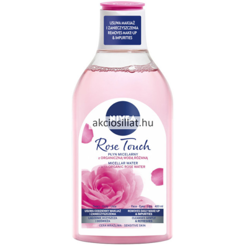 Nivea Rose Touch Micellás Víz 400ml – Gyengéd tisztítás és hosszan tartó hidratálás A Nivea Rose Touch Micellás Víz organikus rózsavízzel gazdagított formulája kíméletesen, mégis hatékonyan távolítja el a sminket és a szennyeződéseket, miközben mélyen ti