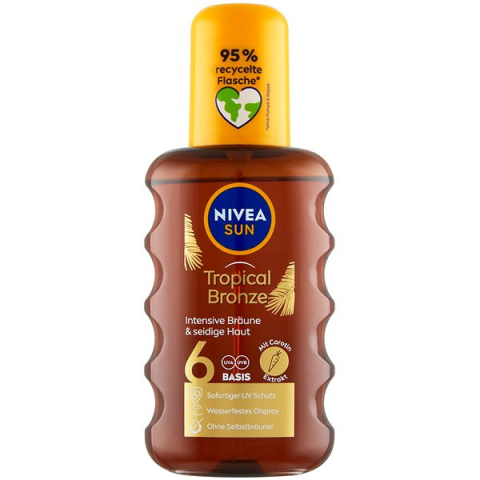 Napolaj - 6 védőfaktoros, normál bőrtípusra ajánlott, arcra és testre, 200 ml-es űrtartalom A NIVEA SUN napolaj alacsony védőfaktor számának köszönhetően a már lebarnult bőrre ideális. Aranyszínű árnyalatot ad és elősegíti a ragyogó, hosszan tartó barnulást. Jojobaolaj tartalmának