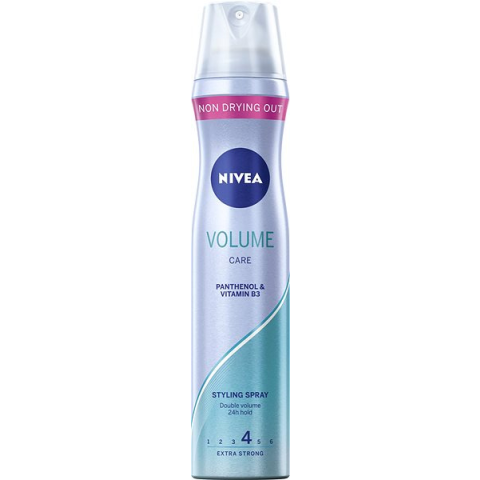 Hajlakk - dúsító, tápláló és fésülést könnyítő hatás, festett, vékony szálú, zsíros, normál, sérült, száraz, hullámos, göndör, nehezen kezelhető, töredezett, öregedő és őszülő hajra, külső hatások elleni védelem, erős fixálás, 250 ml-es kiszerelésben A Nivea Volume Care hajlakk egész nap tökéletes frizurát biztosít. Tökéletesen rögzíti a hajadat, és akár kétszeres volument ad neki. Ezenkívül egyedülálló összetételének köszönhetően m