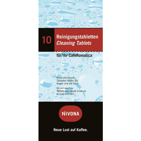 Tisztító tabletta - kávéfőzőkhöz, alkalmas Nivona CafeRomatica automata kávéfőzőkhöz, eltávolítja a lerakódásokat és a zsírt, 10 db a csomagban A Nivona NIRT 701 tisztító tabletták a kávéfőző és kávéútjainak tisztítására szolgálnak. Ezek az automatikus kávéfőzők tisztítóprogrammal vannak felszerelve. A használat nagyon egyszerű és gyo