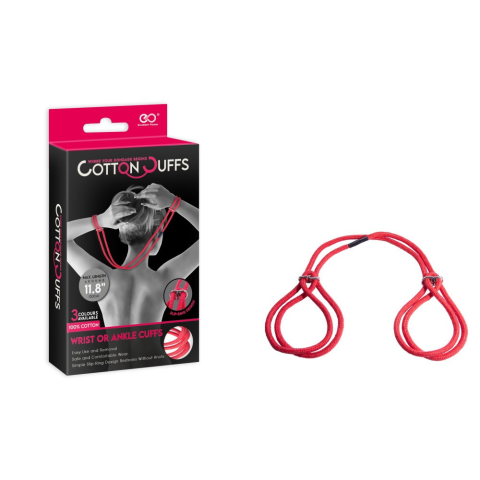 1 kép NMC Cotton Cuffs - fém, pamut kötöző - 30 cm (piros)