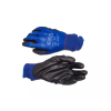 Sötétkék nylon szőtt kesztyű fekete tenyérmártott védőbevonattal, mely jó fogást biztosít. Méret: M (tenyér szélesség: 8-9cm) Bevonat: PU (polyurethane) Szín: sötétkék- fekete Termék sajátosság: tartósság Felhasználás: Ipari munka Szabvá