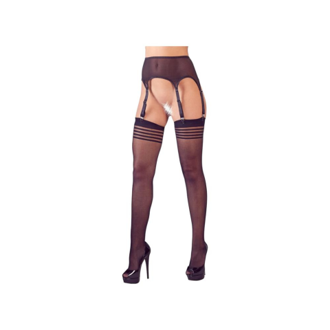2 kép NO:XQSE - csíkos harisnya harisnyatartóval (fekete)
