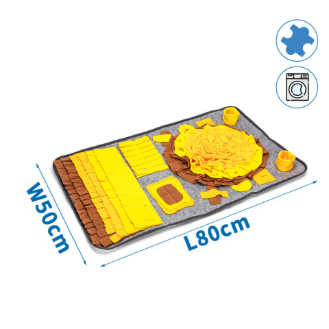 A Nobleza kutya szimat szőnyeg 80x50 cm méretű játék, amely mentális stimulációt és szórakozást biztosít kutyád számára. Segít fejleszteni természetes vadászösztöneit, miközben lefoglalja és csökkenti az unalmat. Tartós és biztonságos anyagból készült, kö